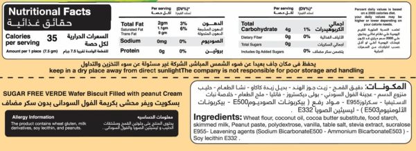 Name | Verde Wafer filled with Peanut cream remove | Verde Wafer filled with Vanilla cream remove | Verde Digestive Biscuits 180 GM remove | Verde Digestive Biscuits Cinnamon 180 GM remove | Verde Wafer filled with Coconut cream remove | Verde Digestive Biscuits Coconut 180 GM remove |